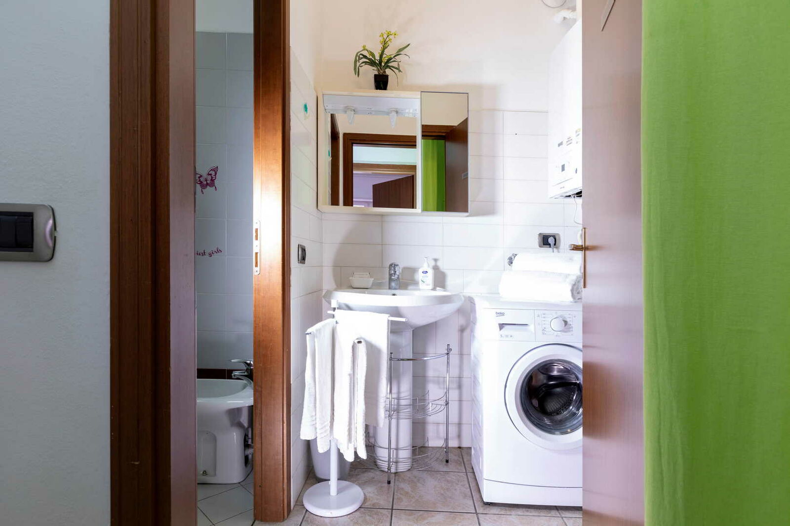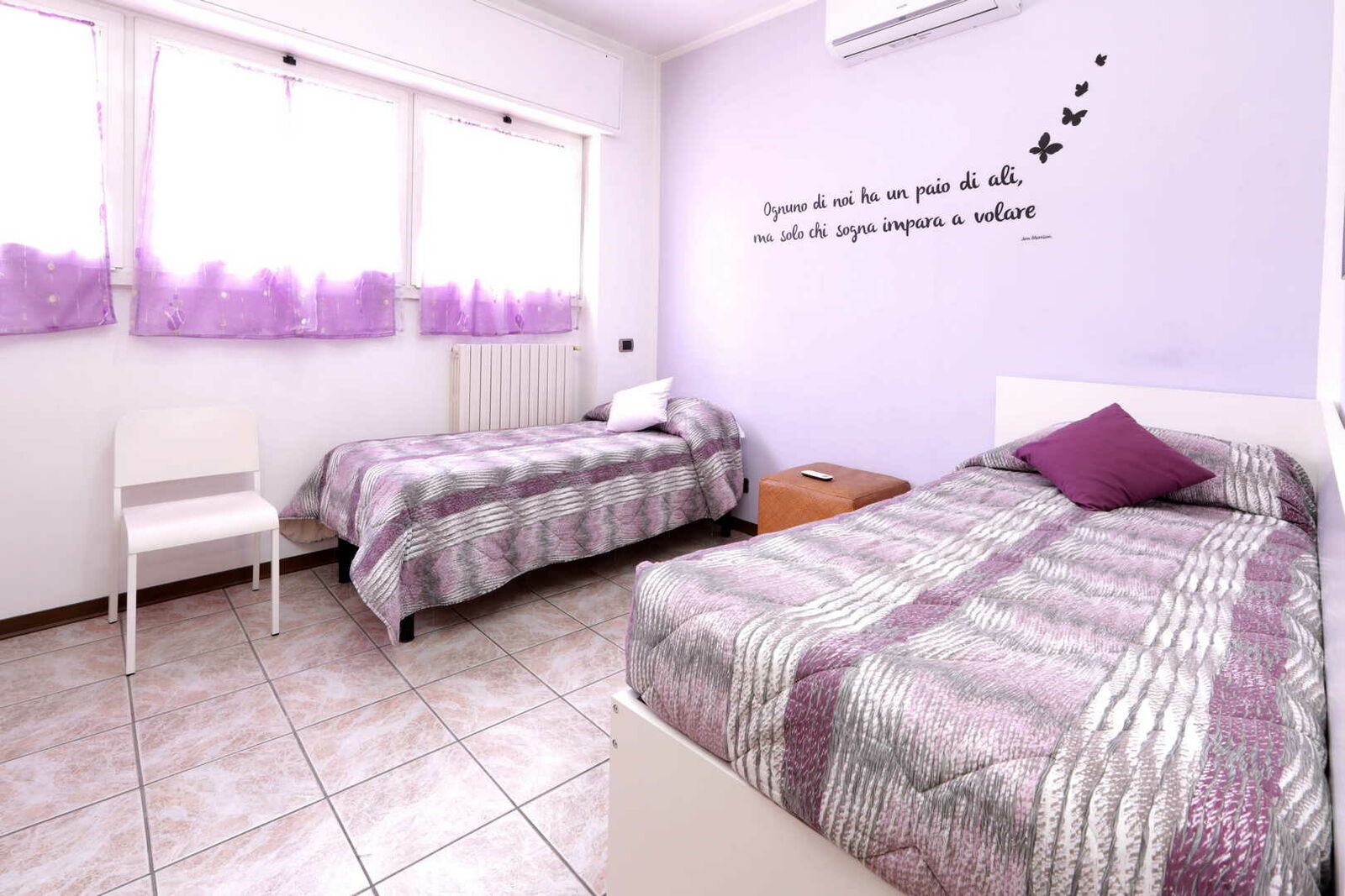 Appartamento in struttura separata piano terra con soggiorno e cucina a vista TV smart 32" Due camere da letto. La prima con 2 letti singoli/ matrimoniale, armadio ed un letto singolo. L'altra con 2 letti singoli ed armadio. Bagno con lavatrice e doccia.