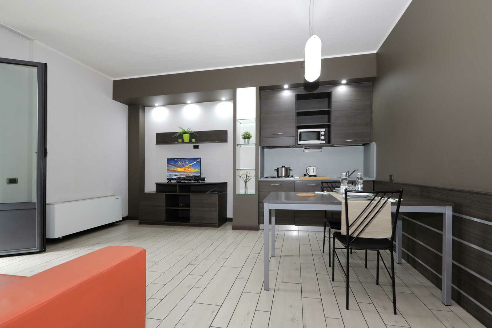 Appartamento di 50 metri quadri composto da soggiorno arredato con divano, TV smart da 32" ed una cucina attrezzata con frigorifero, piano cottura elettrico e micronde. Camera da letto 1 matrimoniale La zona notte comprende una camera da letto matrimoniale, ampio armadio sia in camera che nel disimpegno. Ampio balcone che si affaccia in giardino.
