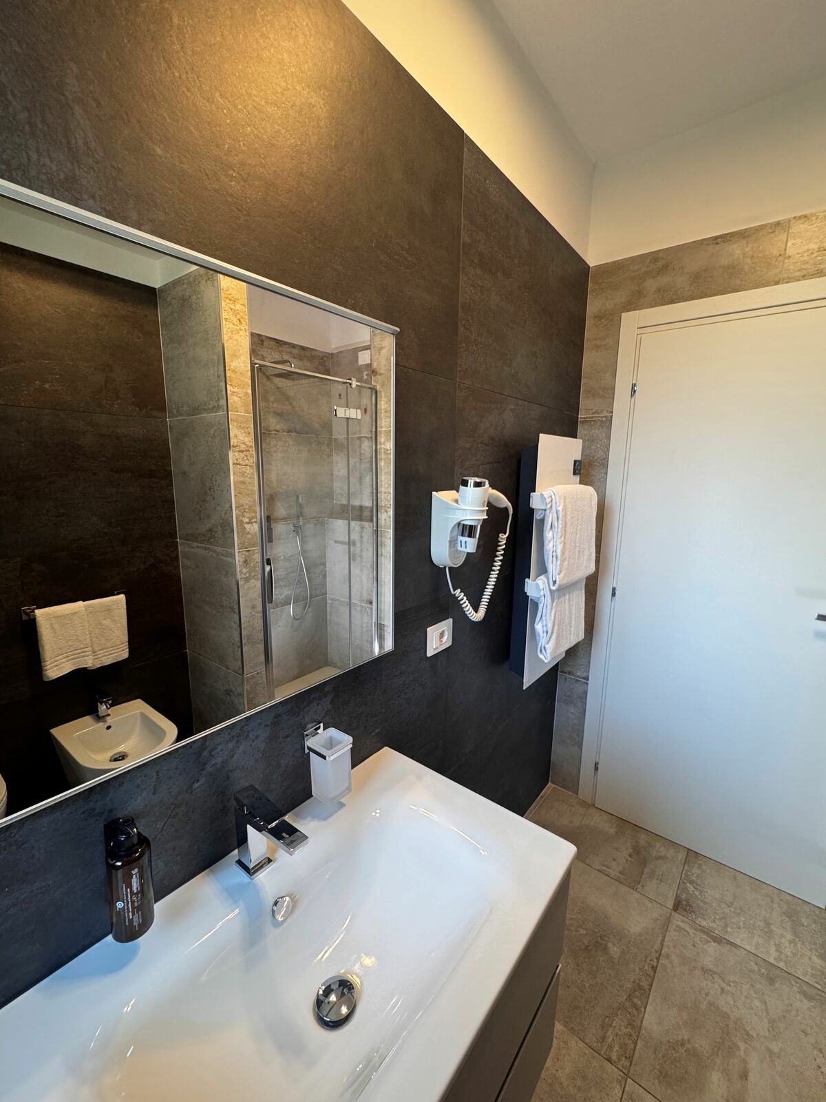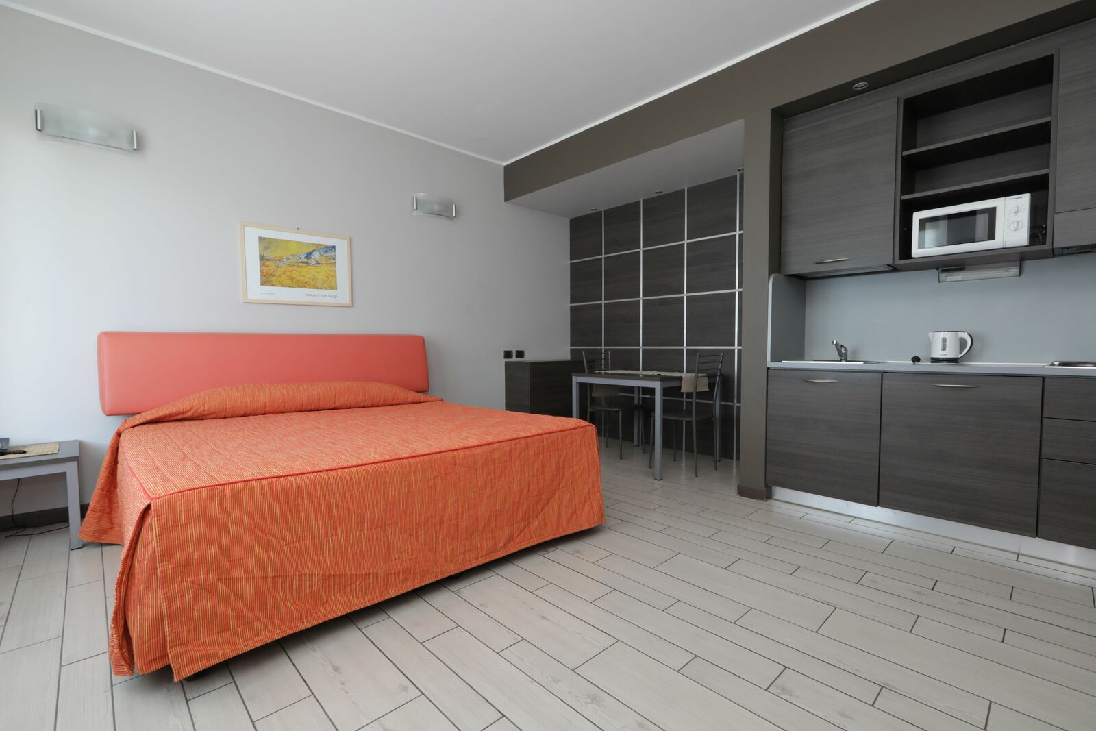 Appartamento di 25 metri quadri con letti singoli, TV smart da 32", cucina attrezzata con frigorifero, piano cottura elettrico e microonde bagno ed un ampio disimpegno con armadio a due ante. Balcone spazioso